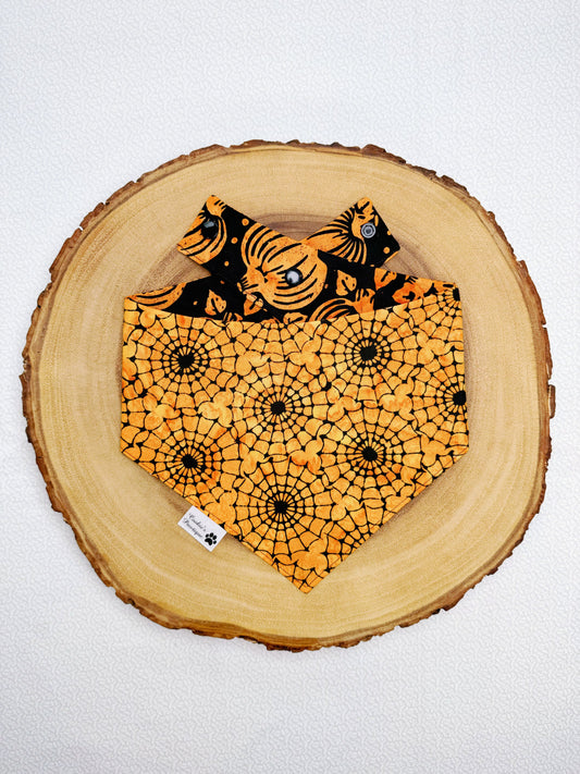 Batik Halloween Pumpkins And Spiderwebs Bandana