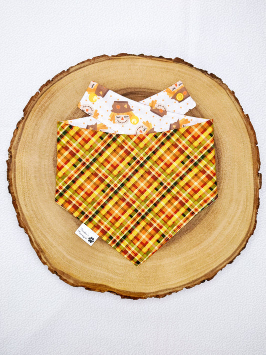 Cute Scarecrows And Fall Plaid Bandana