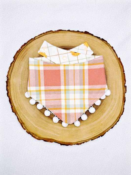 Sunflower and Blush Pink Plaid Bandana