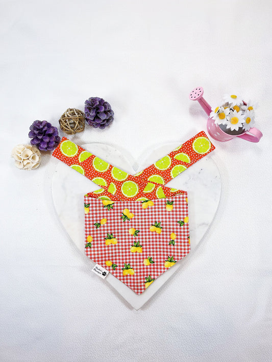 Lime In Orange Dot and Gingham Lemon Bandana