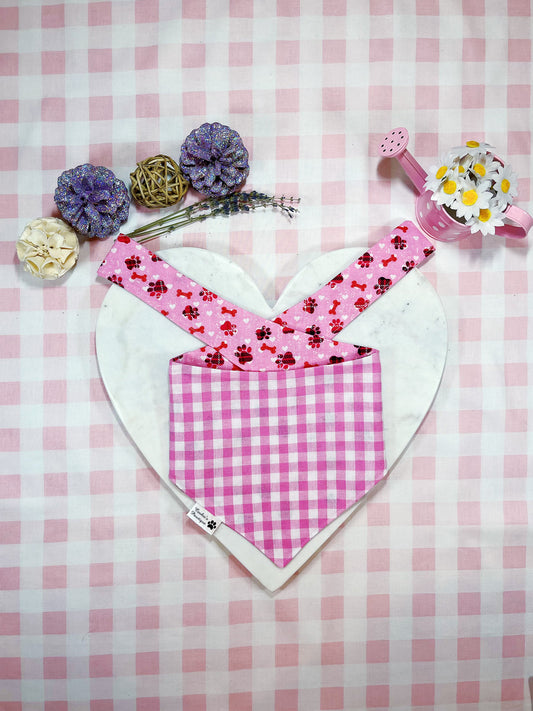 Little Dog Paw With Bone And Pink Plaid Bandana