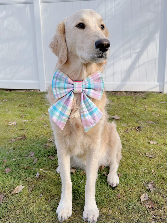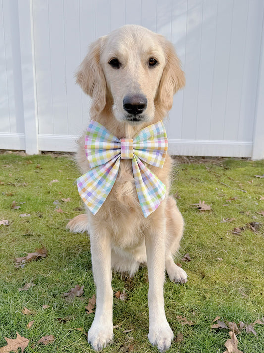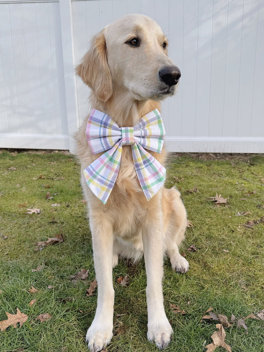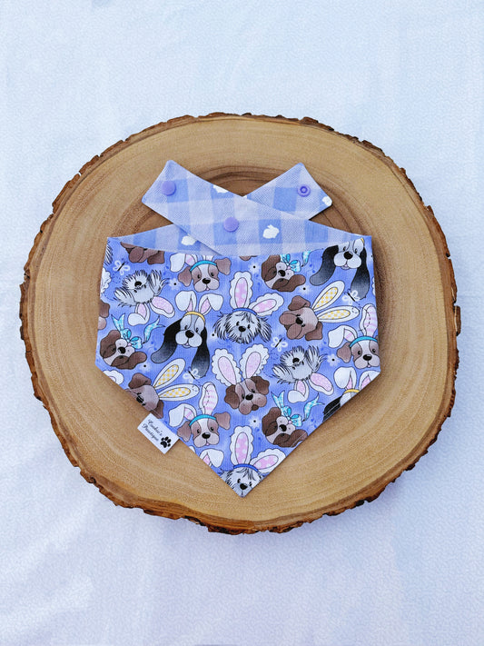 Bunnies On Purple Plaid And Dogs In Bunny Ears Bandana