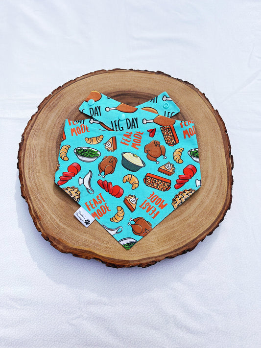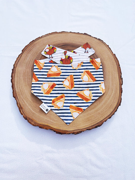 Turkey And Pumpkin Pie Slice On Stripes Bandana
