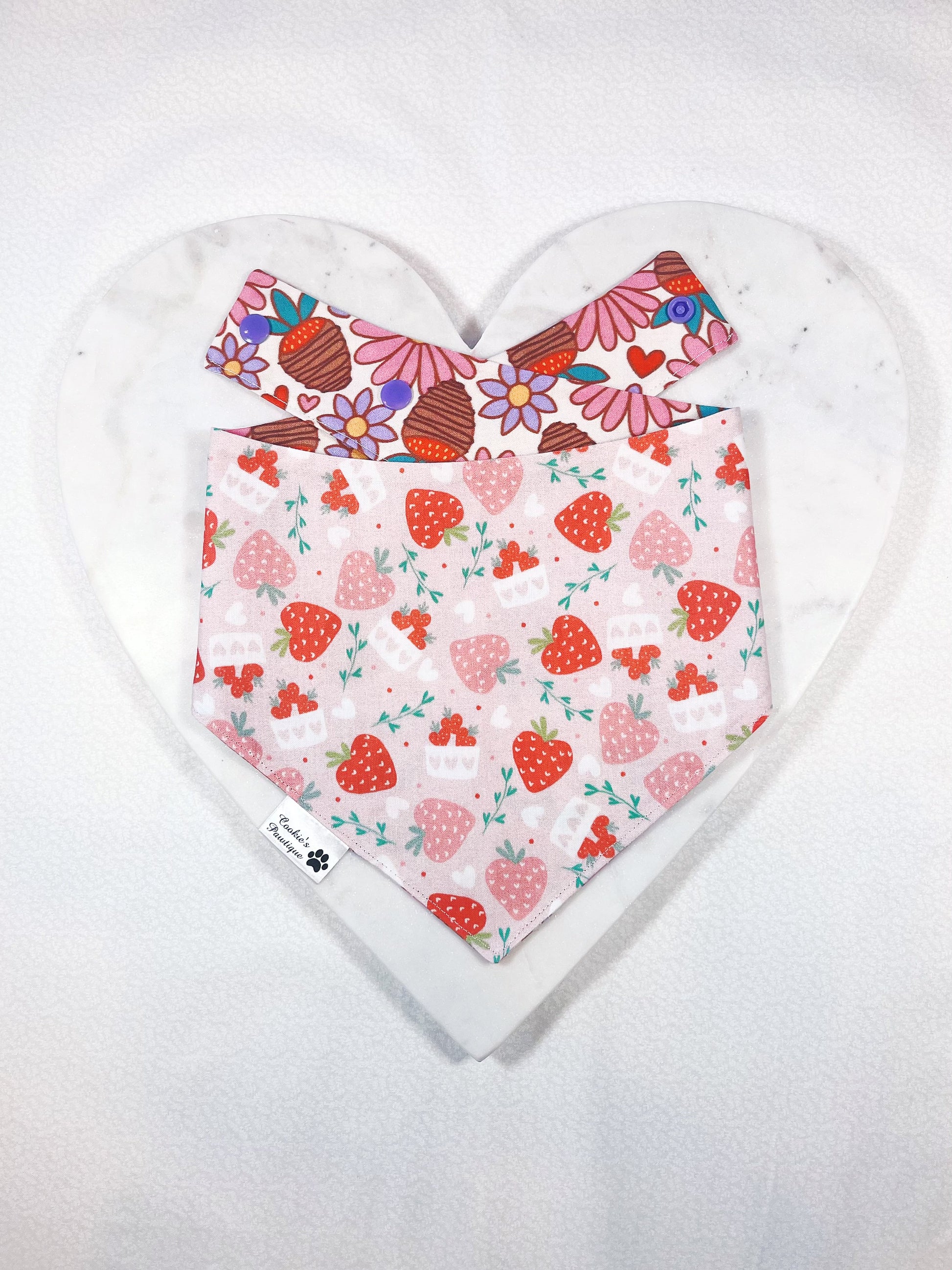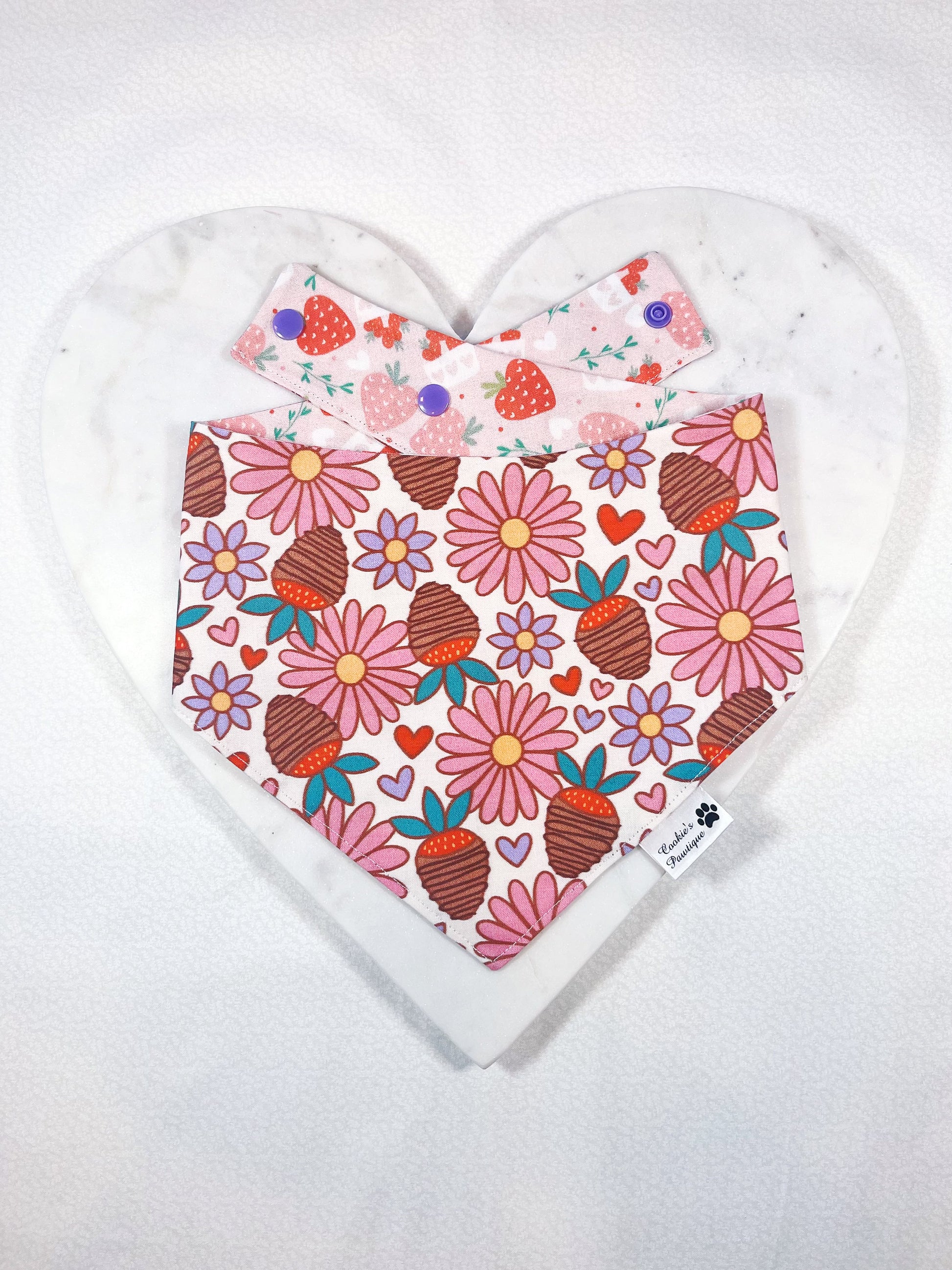 This is a reversible bandana that features two bandanas in ONE! Made with high-quality and trendy fabrics, and designed with your dog's comfort in mind, it is a PAWFECT accessory to add some flair to your best furry friend's look for Valentine's Day.