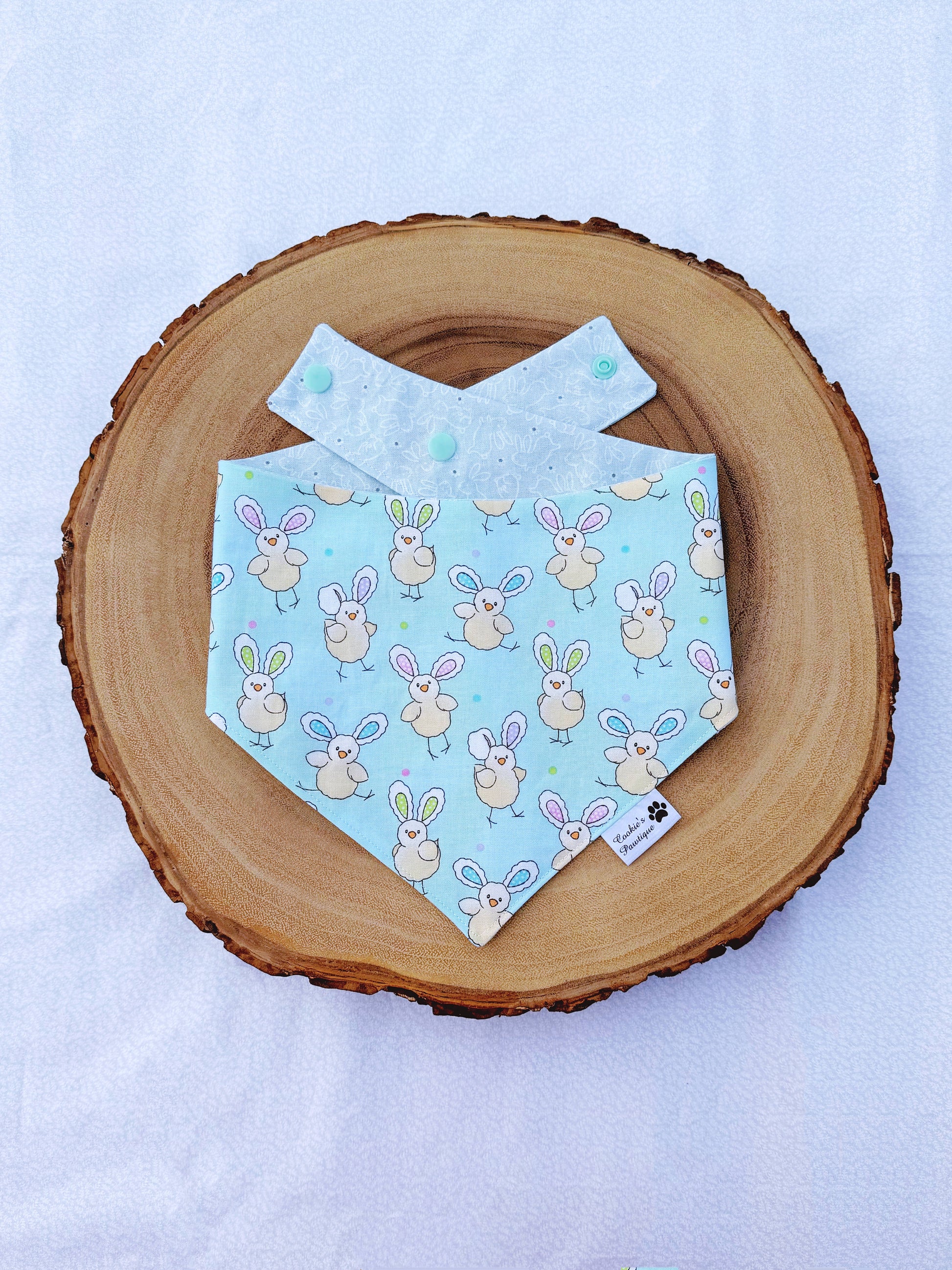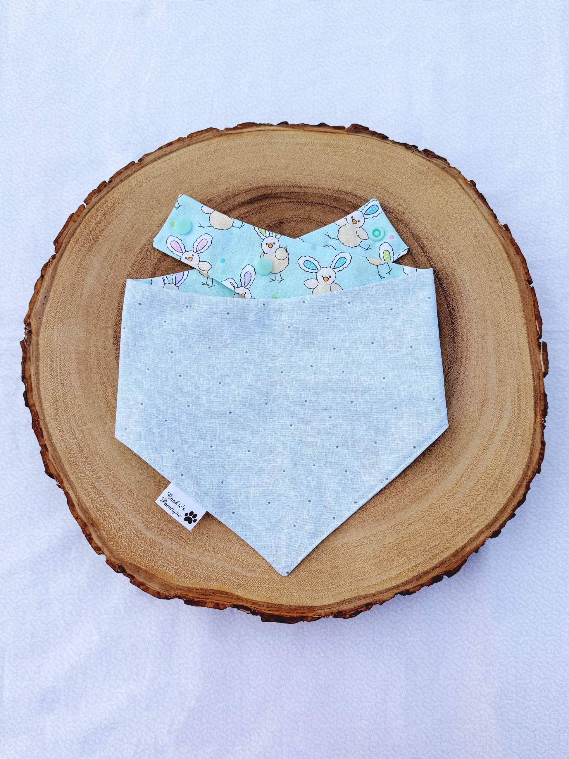 This is a reversible bandana that features two bandanas in ONE! Made with high-quality and trendy fabrics, and designed with your dog's comfort in mind, it is a PAWFECT accessory to add some flair to your best furry friend's look for Easter.