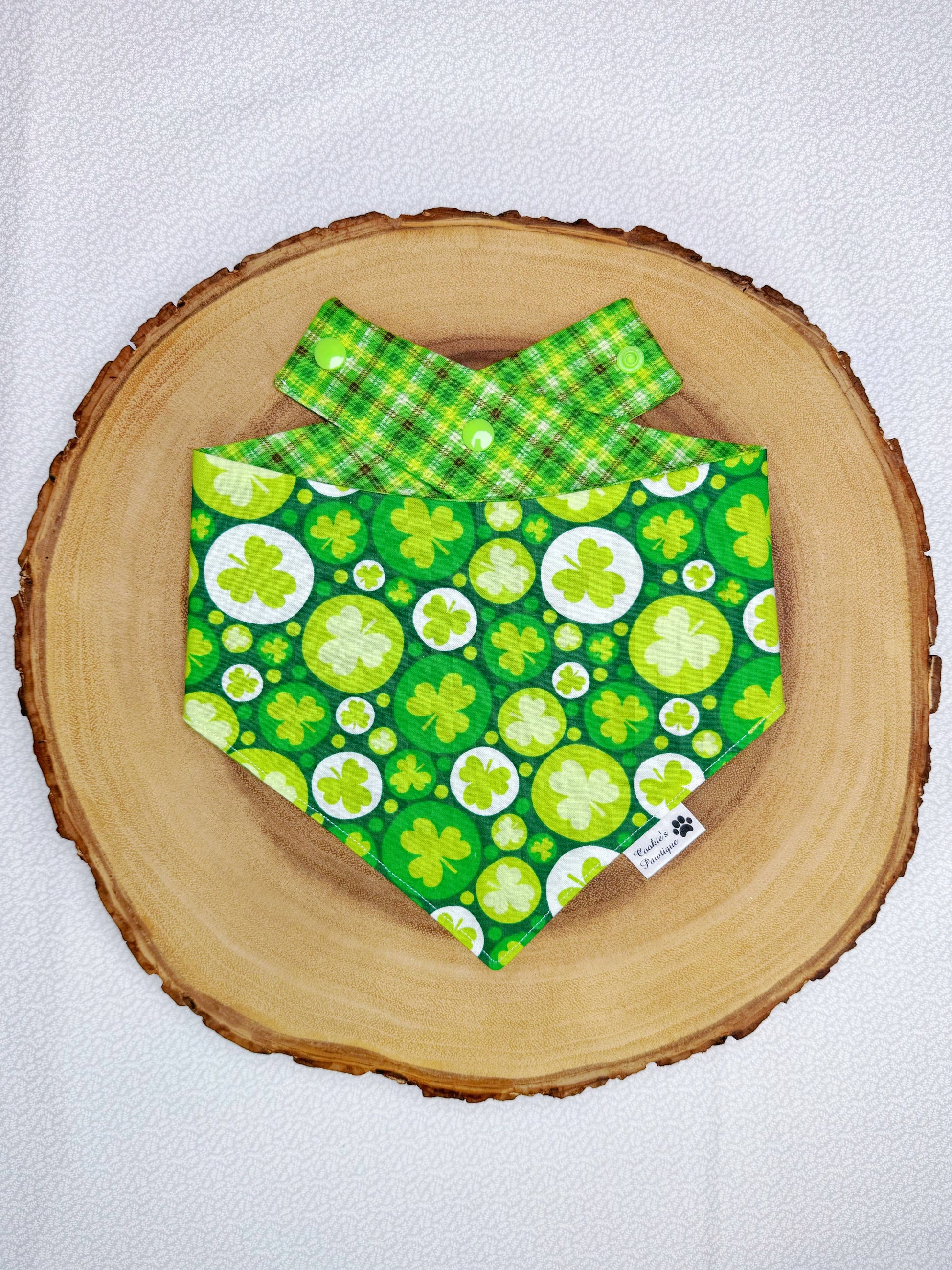 This is a reversible bandana that features two bandanas in ONE! Made with high-quality and trendy fabrics, and designed with your dog's comfort in mind, it is a PAWFECT accessory to add some flair to your best furry friend's look for St. Patrick's Day.