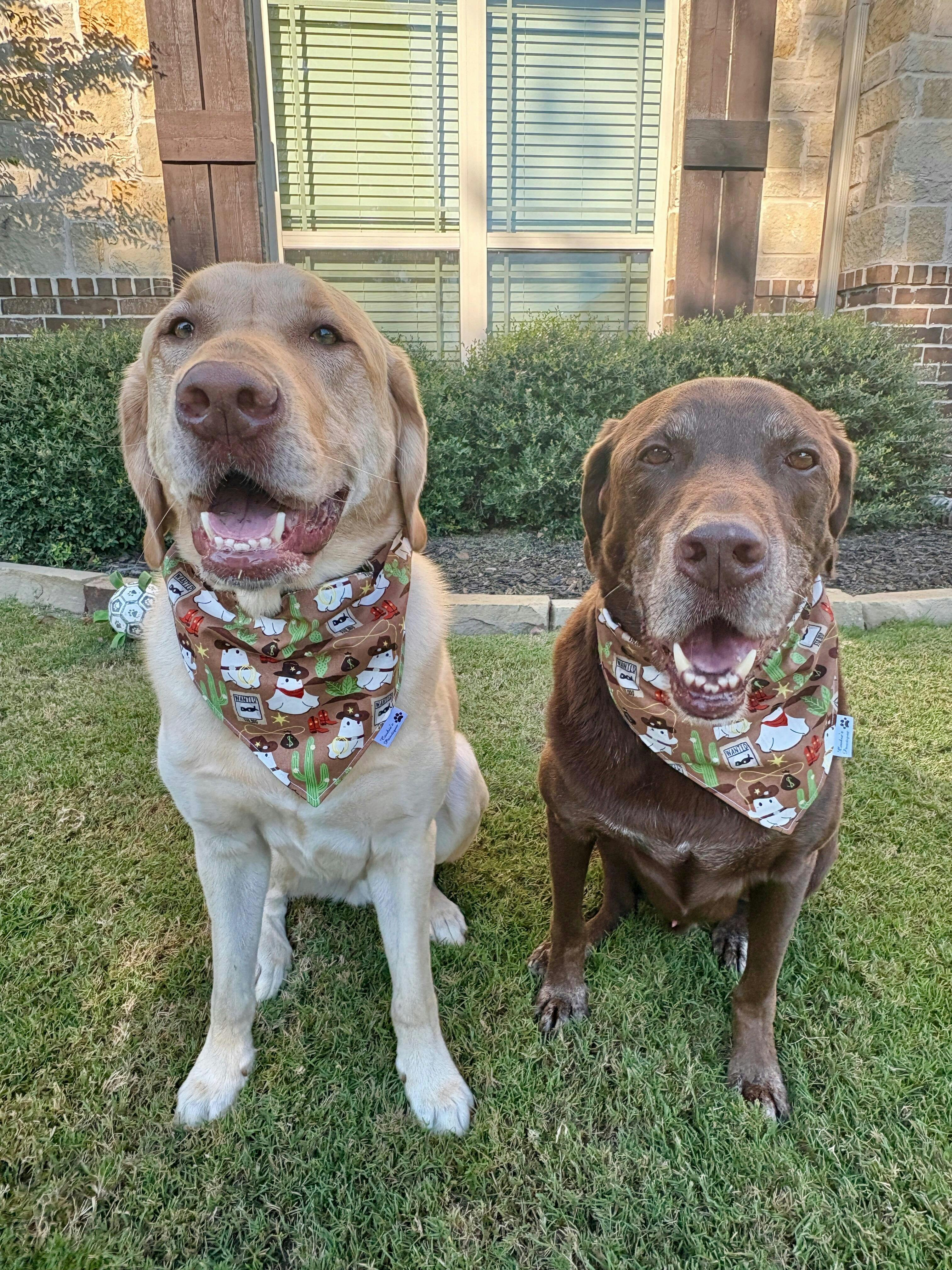 Tie-On Bandana: This style is made to tie around your dog’s neck directly with knots and does not require a collar. All our tie-on bandanas have a curved design to adapt your dog’s natural neck-line. It is designed and made to fit more comfortably while eliminating folds.