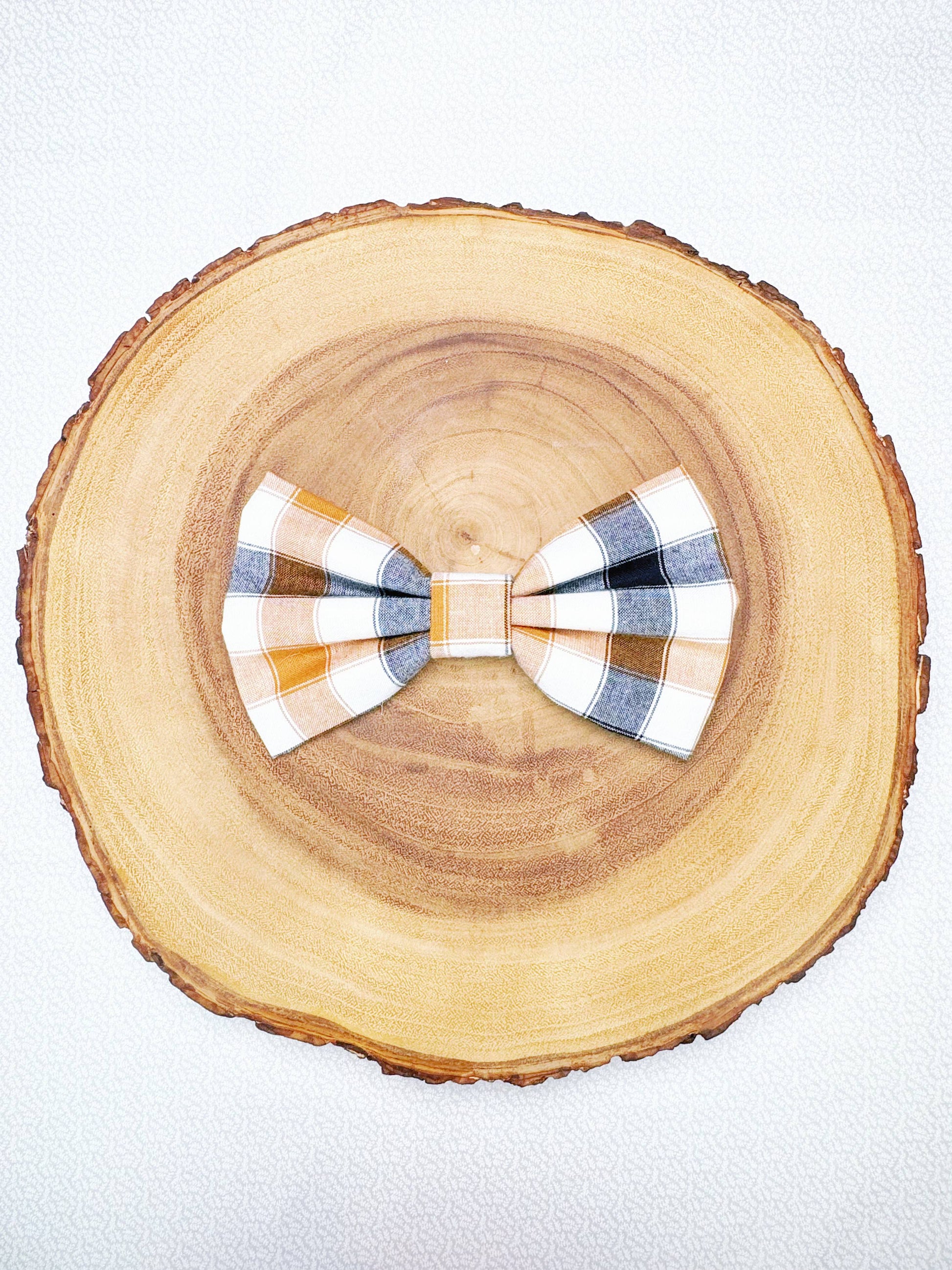 All our bow ties and sailor bows are handmade, each with two elastic straps at the back to easily slide over the collar. Since they're handmade, each product may vary in design, including color, pattern placement, size, and shape. This uniqueness means no two bows are exactly the same.