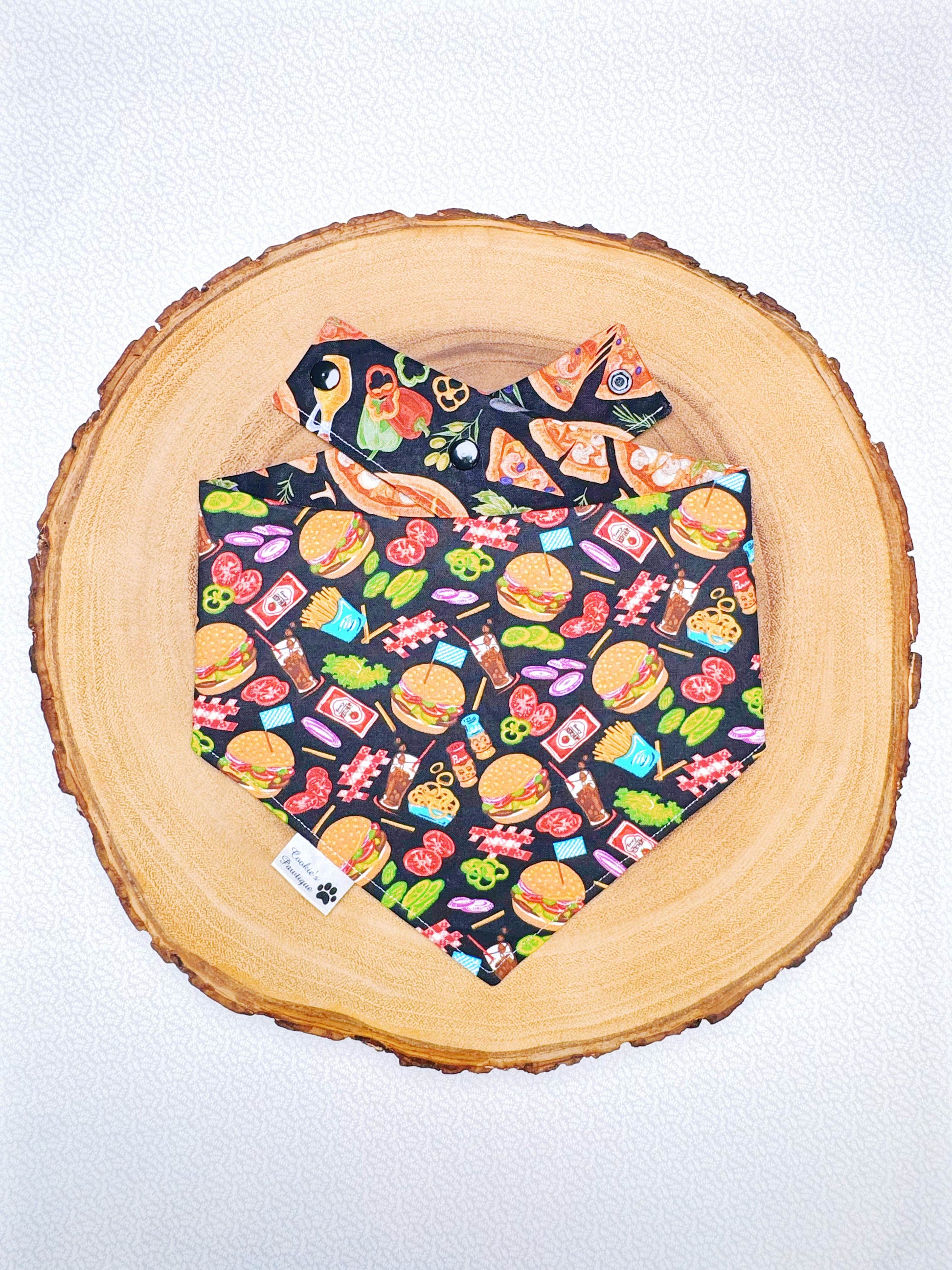This is a reversible bandana that features two bandanas in ONE! Made with high-quality and trendy fabrics, and designed with your dog's comfort in mind, it is a PAWFECT accessory to add some flair to your best furry friend's everyday look.