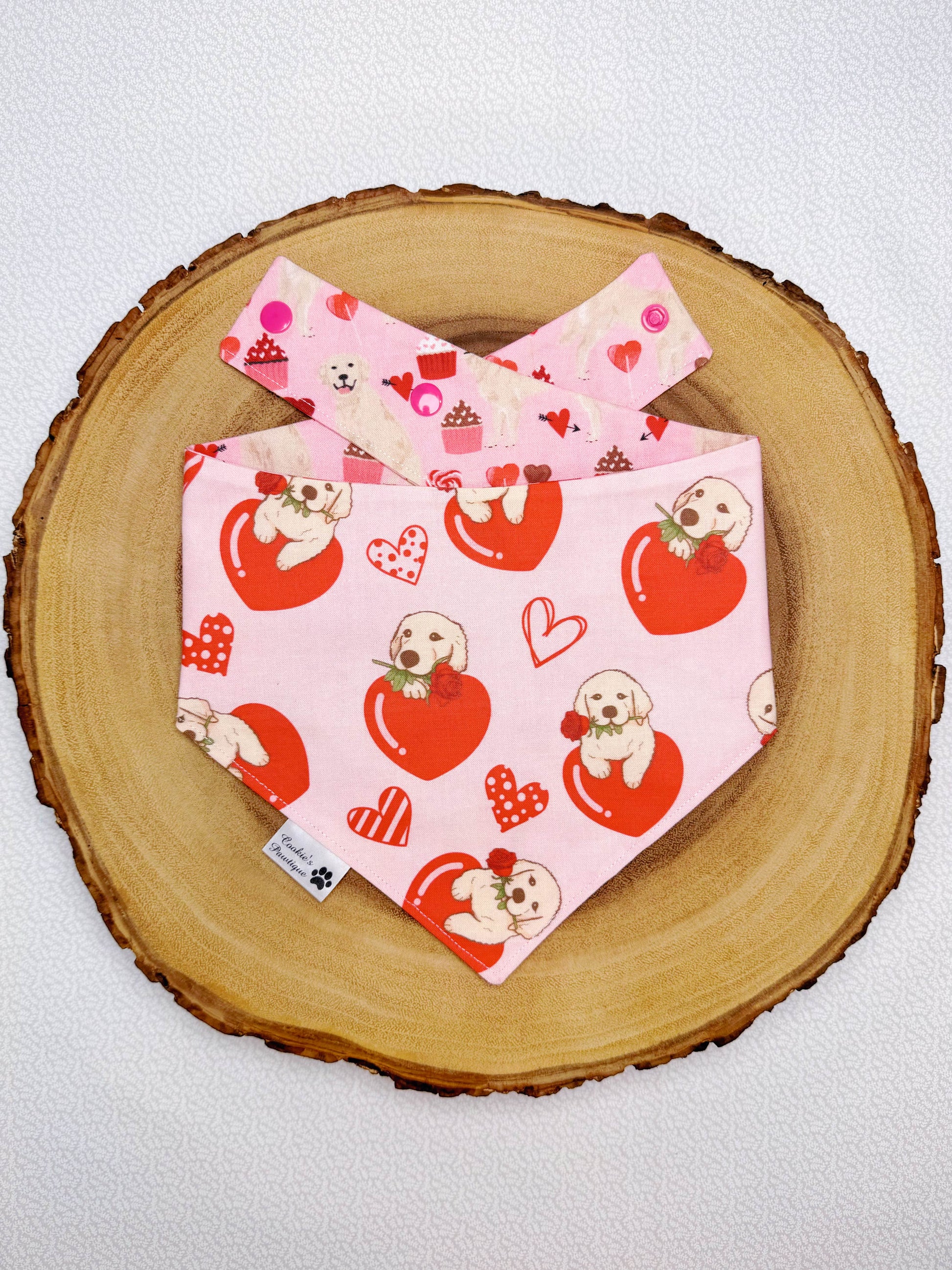 This is a reversible bandana that features two bandanas in ONE! Made with high-quality and trendy fabrics, and designed with your dog's comfort in mind, it is a PAWFECT accessory to add some flair to your best furry friend's look for Valentine's Day.