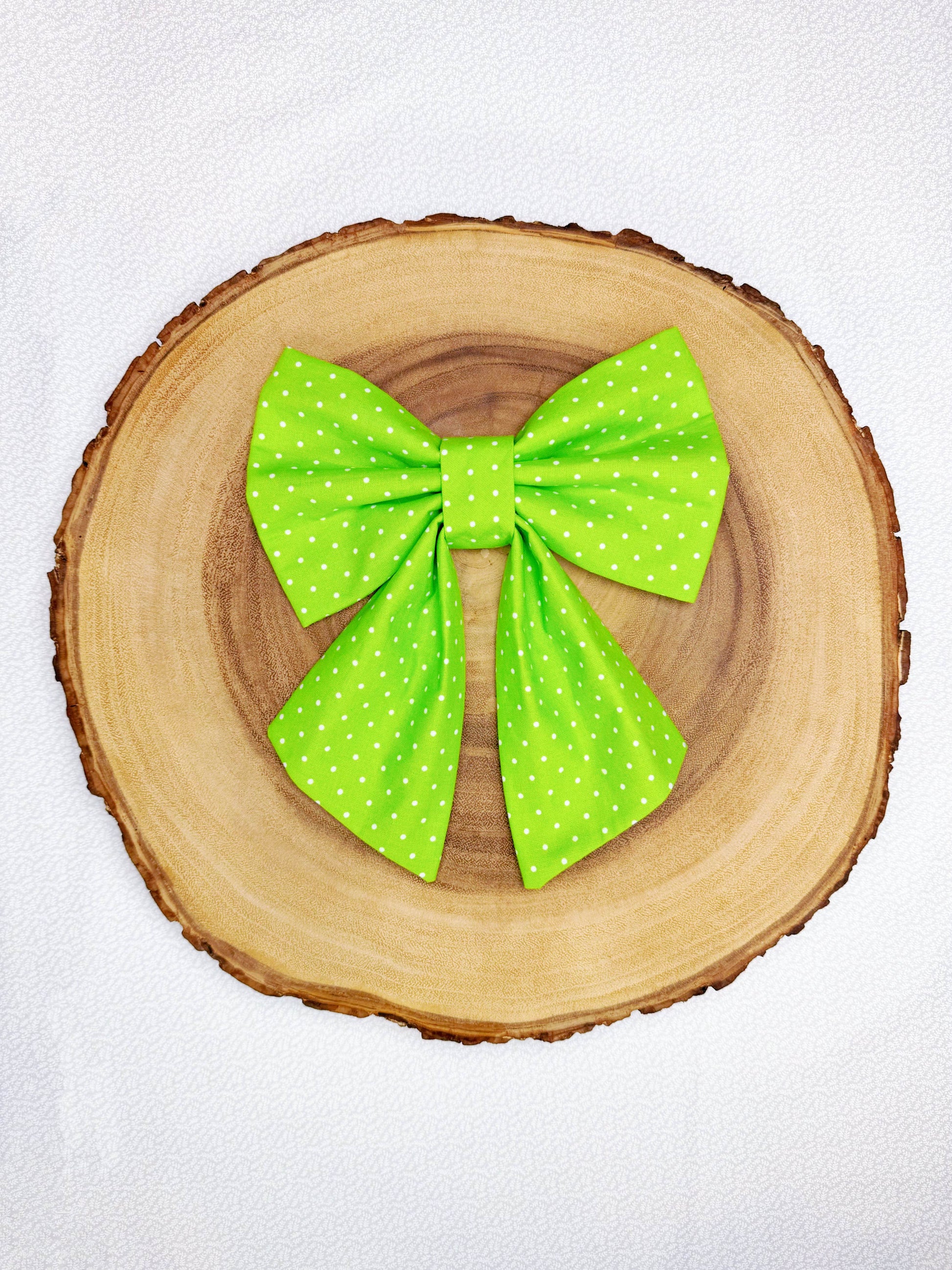 All our bow ties and sailor bows are handmade, each with two elastic straps at the back to easily slide over the collar. Since they're handmade, each product may vary in design, including color, pattern placement, size, and shape. This uniqueness means no two bows are exactly the same.