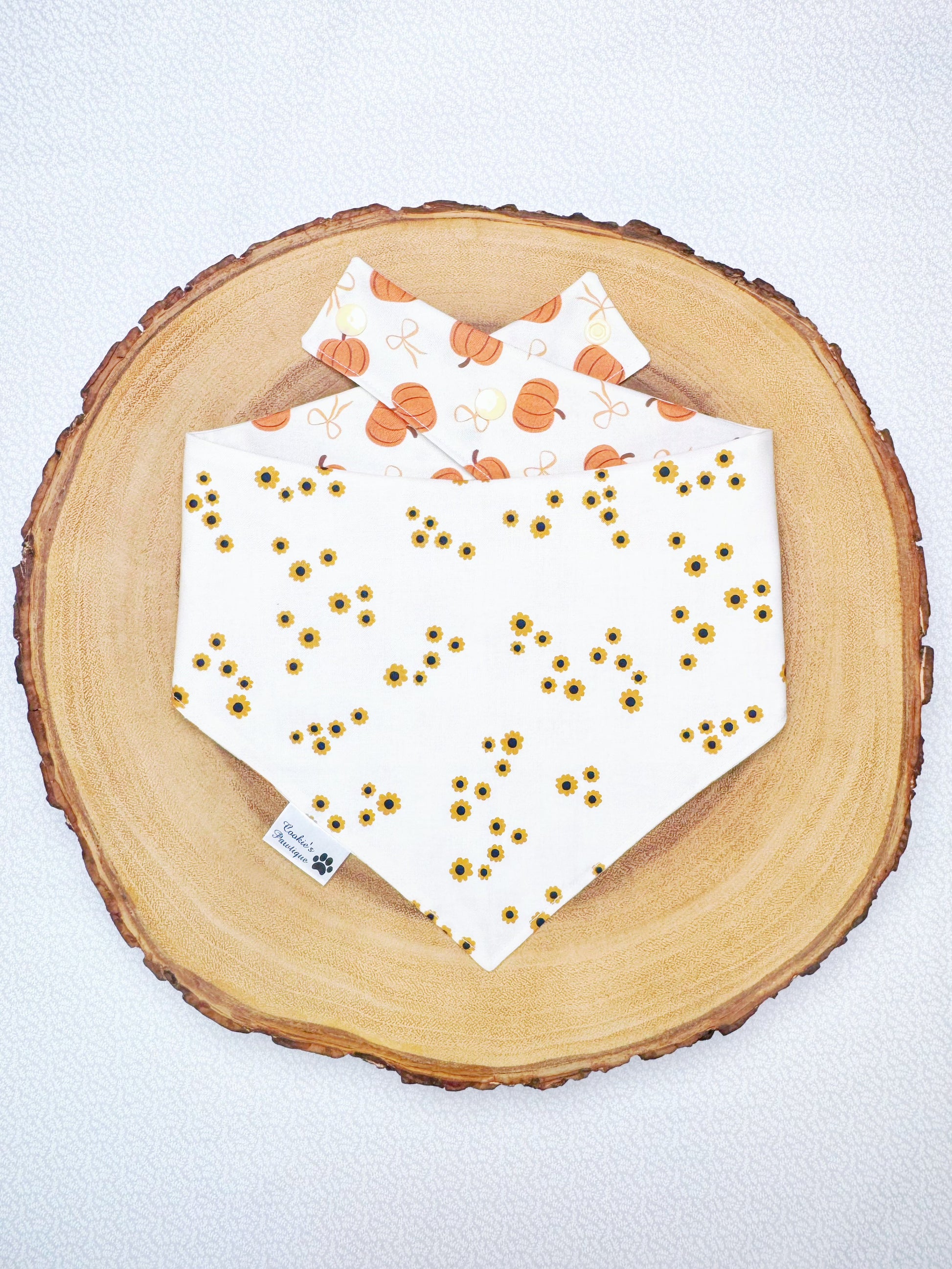 This is a reversible bandana that features two bandanas in ONE! Made with high-quality and trendy fabrics, and designed with your dog's comfort in mind, it is a PAWFECT accessory to add some flair to your best furry friend's everyday look in fall.