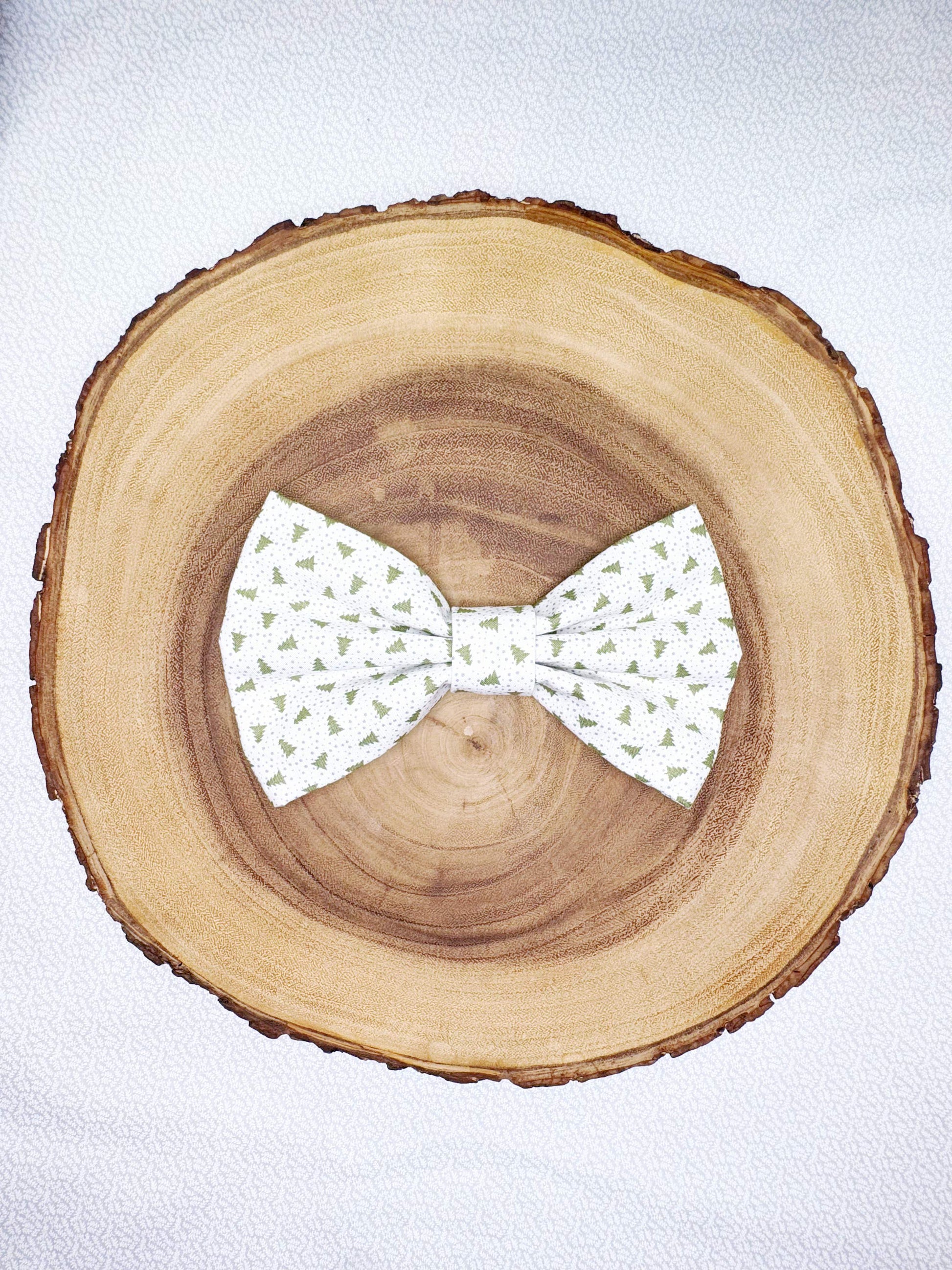 All our bow ties and sailor bows are handmade, each with two elastic straps at the back to easily slide over the collar. Since they're handmade, each product may vary in design, including color, pattern placement, size, and shape. This uniqueness means no two bows are exactly the same.
